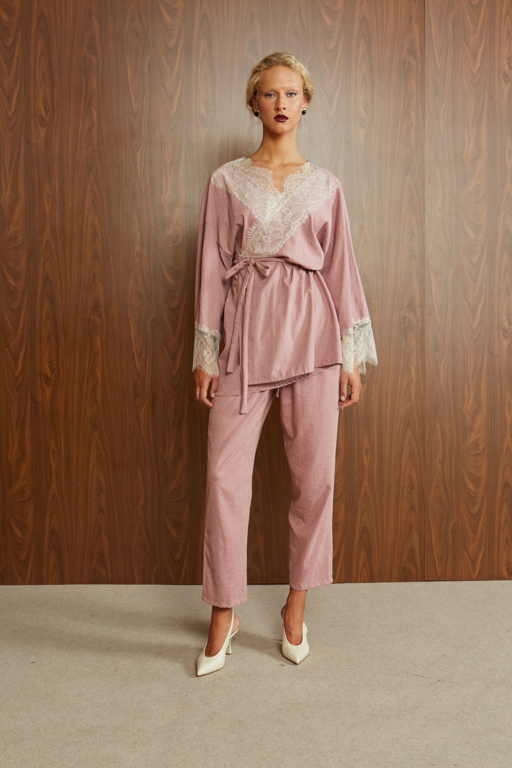 Κιμονό κρουαζέ ροζ
