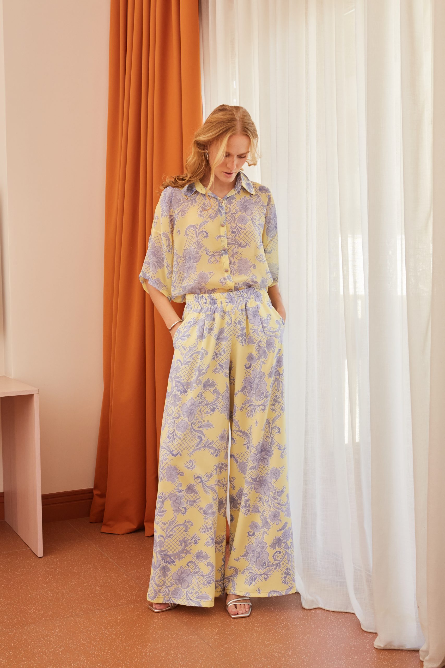 Παντελόνα κίτρινο – λιλά