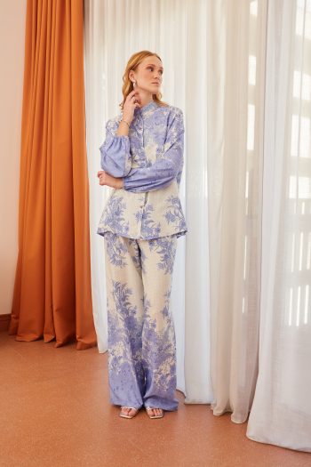 Παντελόνα με πιέτα και κουμπιά άσπρο – λιλά