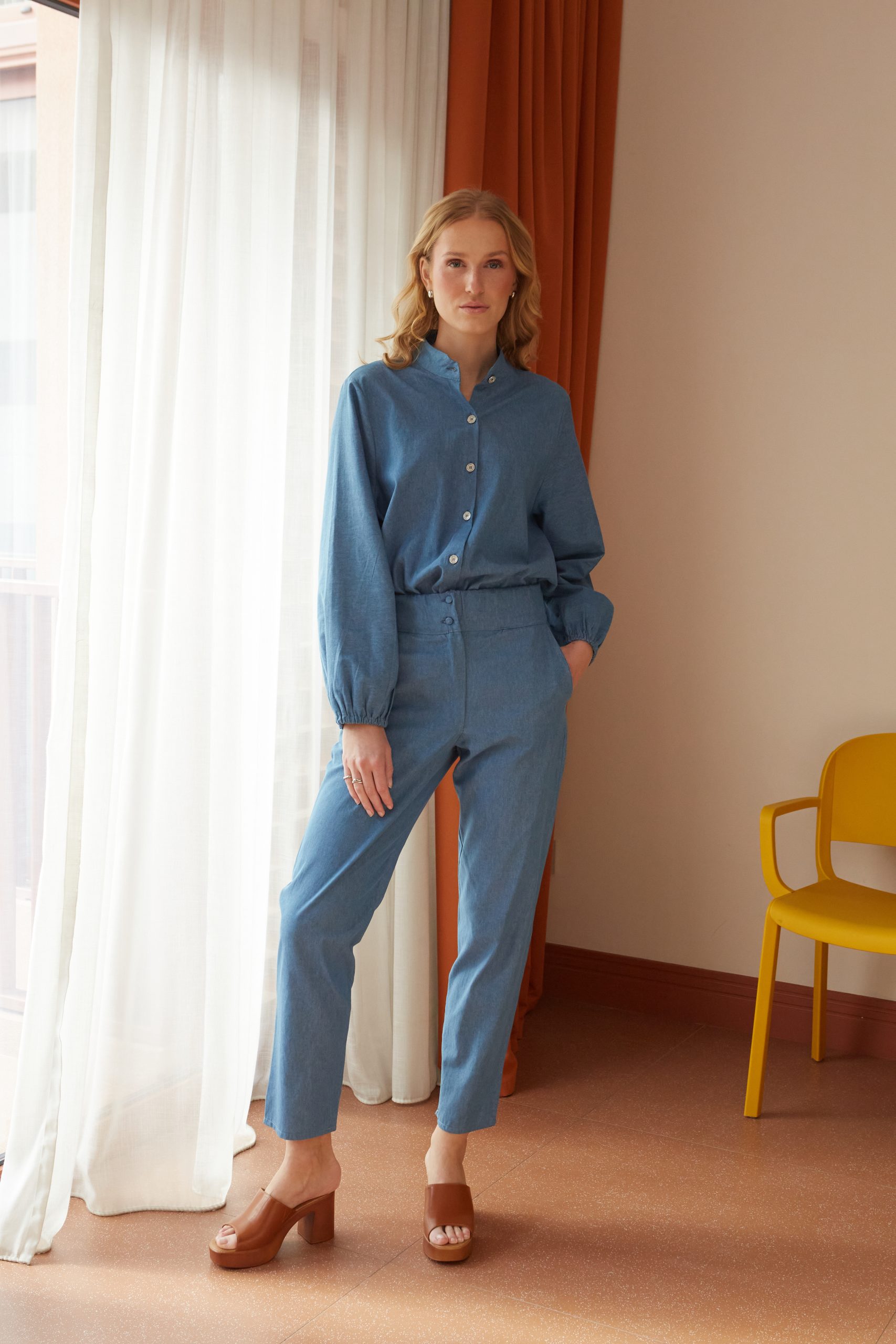 • Κλείνει με ντυμένα κουμπιά και φερμουάρ