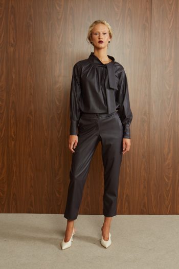 Μπλούζα με δέσιμο στο λαιμό σοκολά δερματίνη