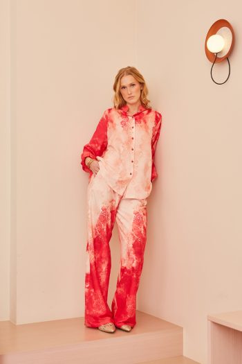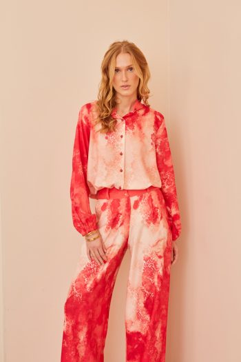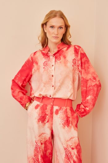 Πουκάμισο με μάο γιακά φούξια – βερικοκί
