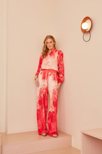 Παντελόνα με πιέτα και κουμπιά φούξια - βερικοκί