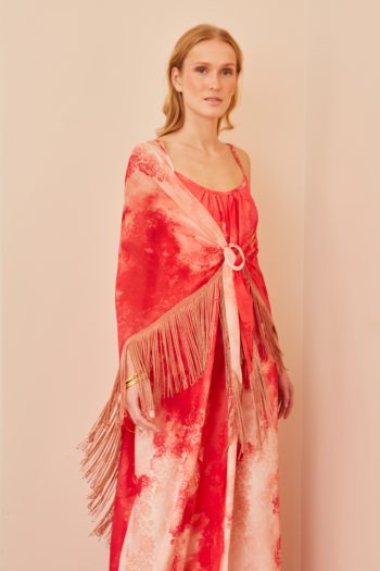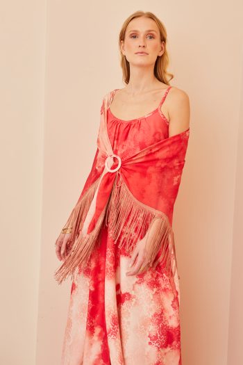 Σάλι με κρόσια και αξεσουάρ φούξια – βερικοκί