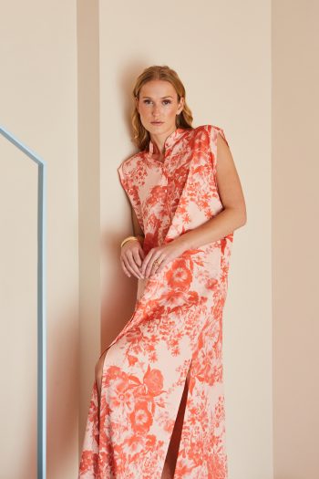 Φόρεμα σεμιζιέ αμάνικο μακρύ πορτοκαλί – βερικοκί