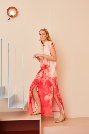 Φόρεμα σεμιζιέ αμάνικο φούξια – βερικοκί
