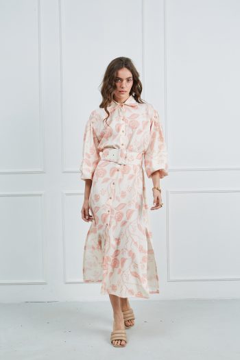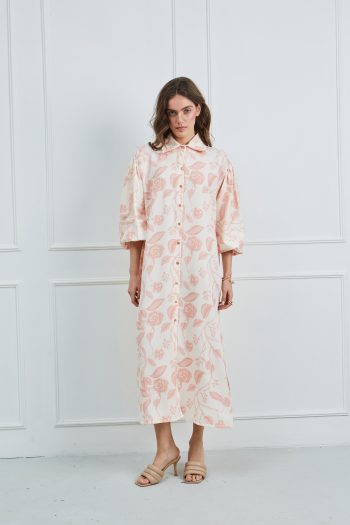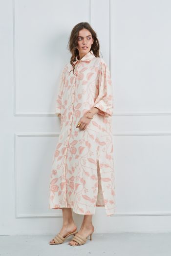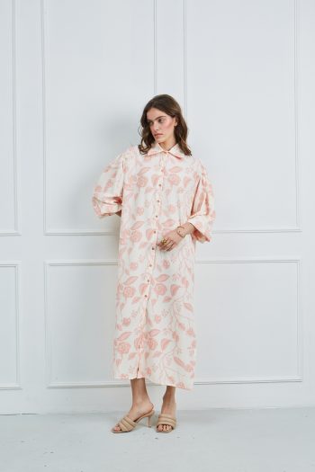 Φόρεμα μακρυμάνικο κρεμ – βερικοκί
