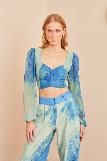 Crop top μακρυμάνικο φυστικί – μπλε